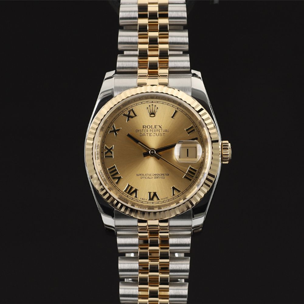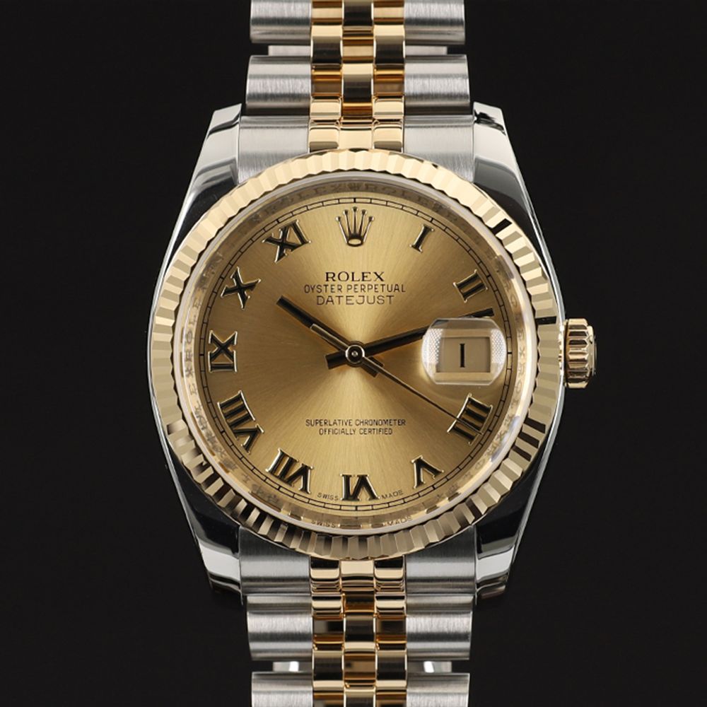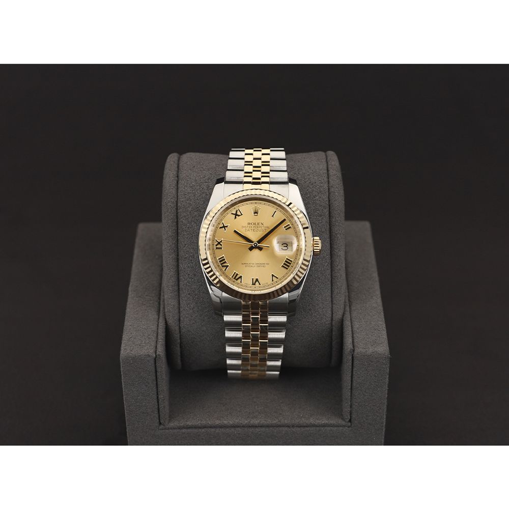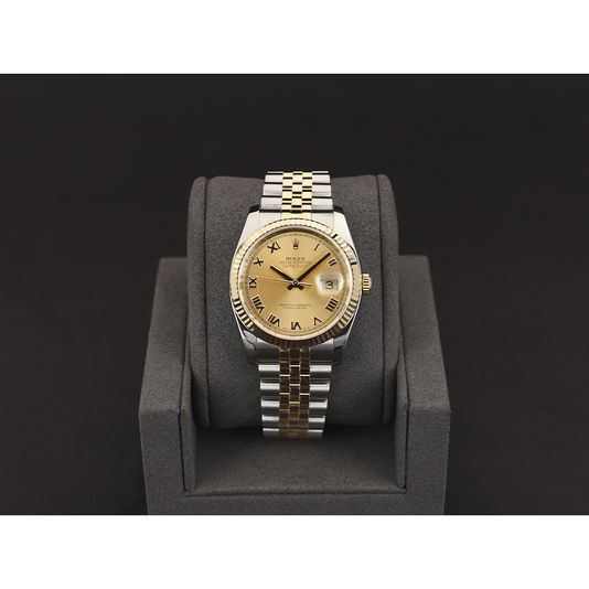 롤렉스 데이트저스트 36 옐로골드 콤비 샴페인 로만 116233