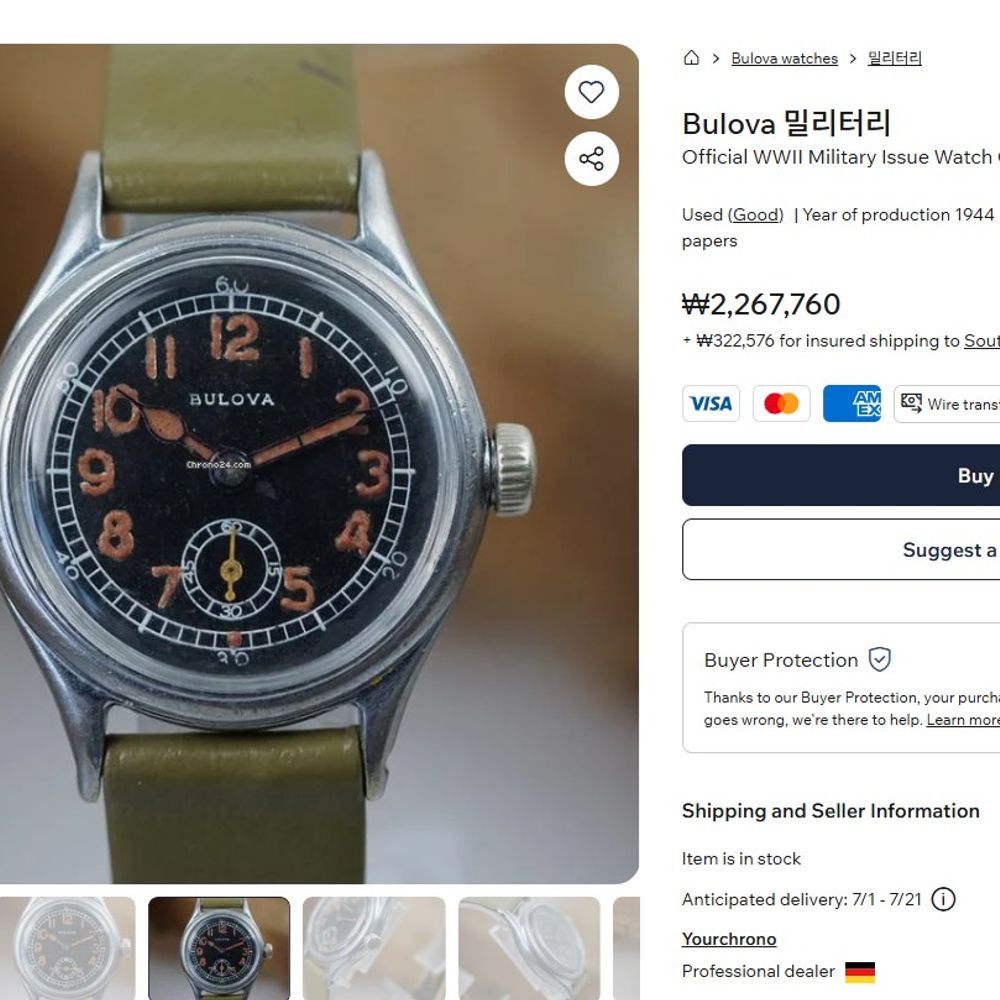 부로바 밀리터리 WW2 더티더즌 워치 클래식 빈티지 (Bulova Military Army)