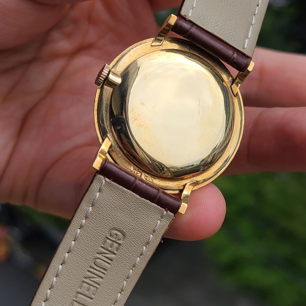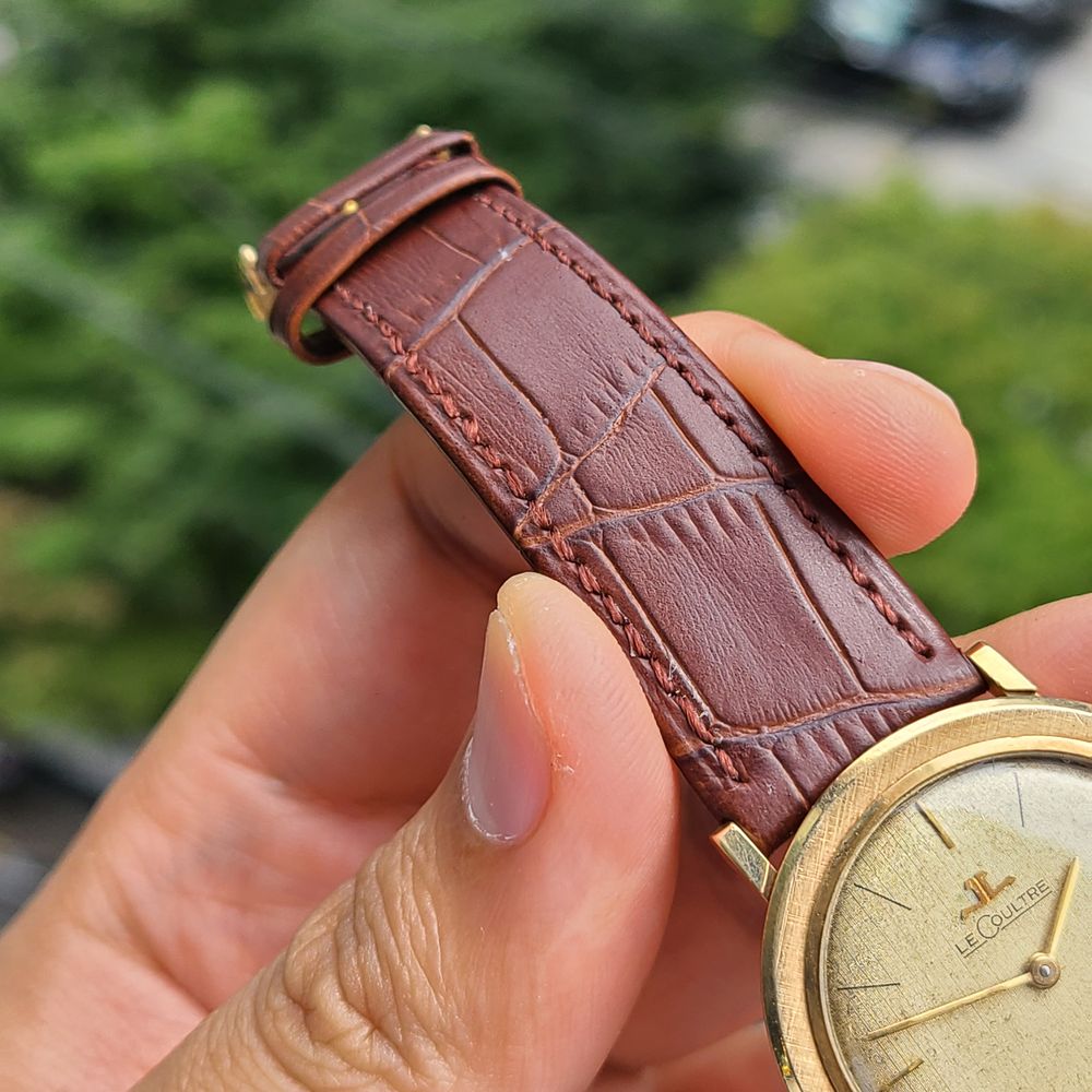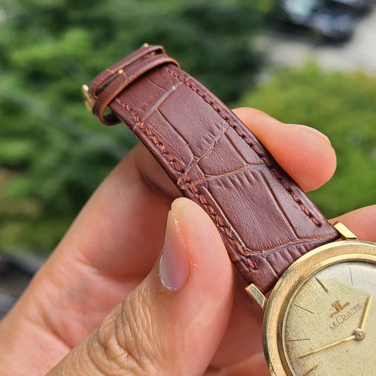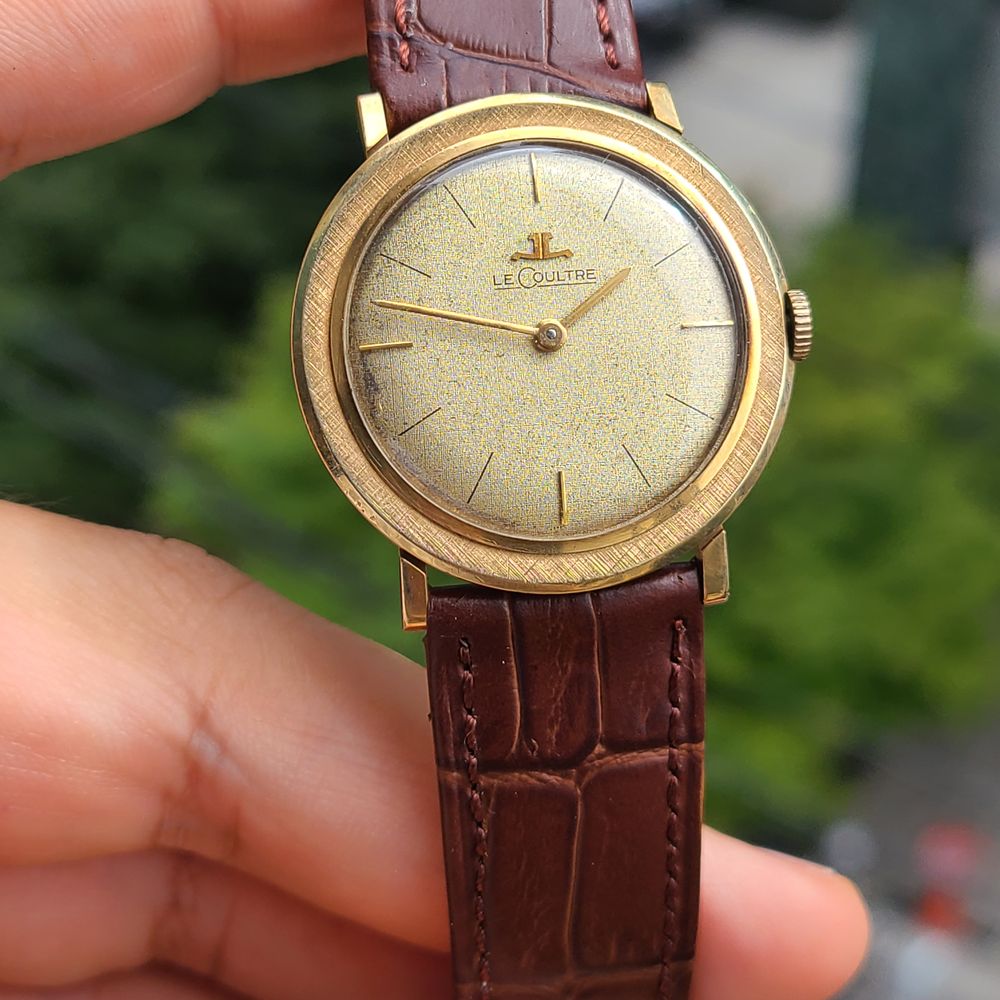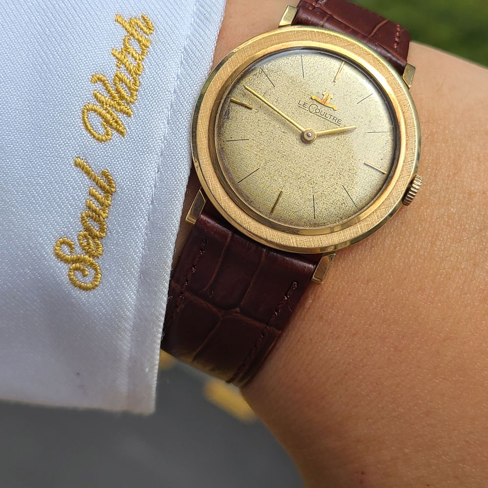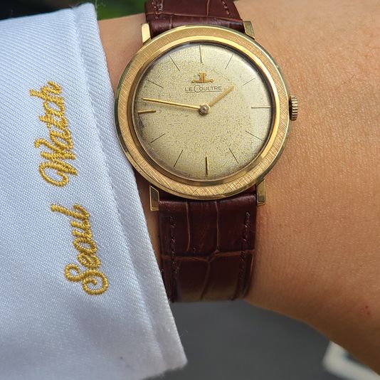 예거르쿨트르 클래식 린넨 다이얼 14K 금통 수동