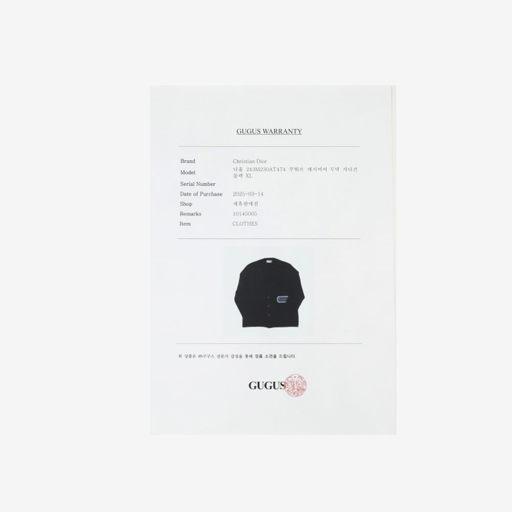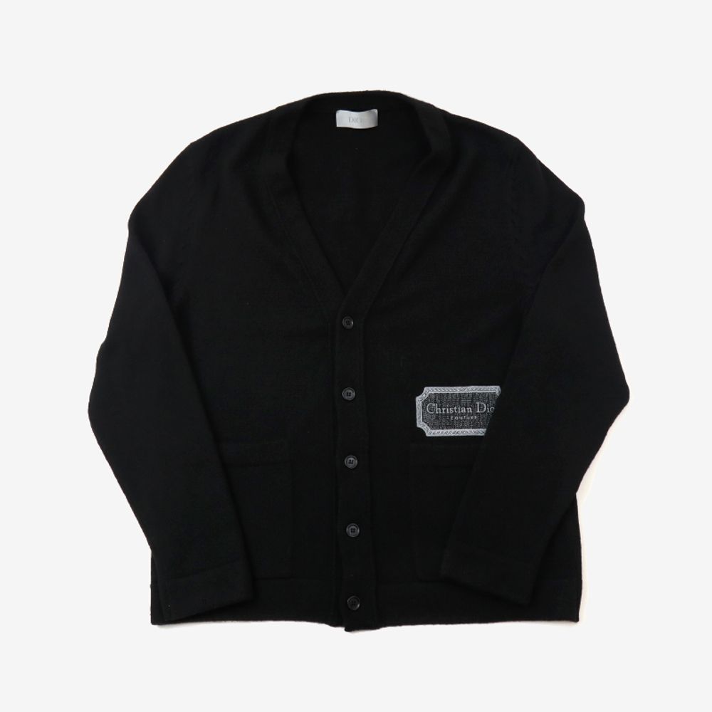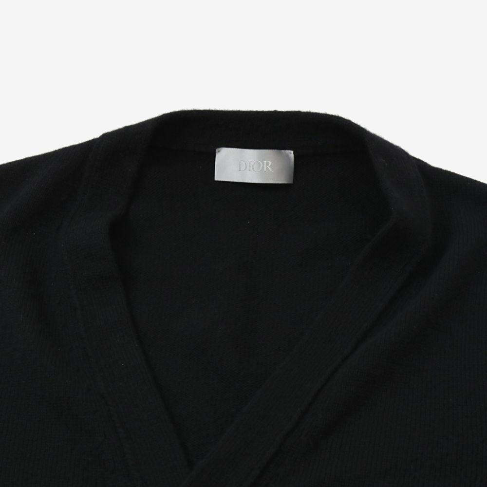 (중고명품의류)디올 243M230AT474 꾸뛰르 캐시미어 V넥 가디건 블랙 XL