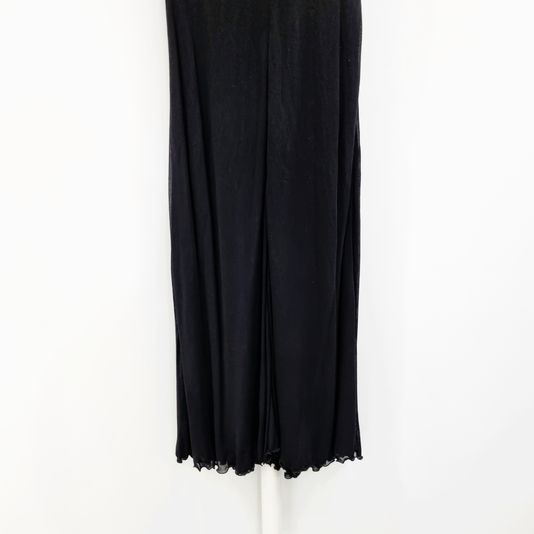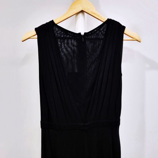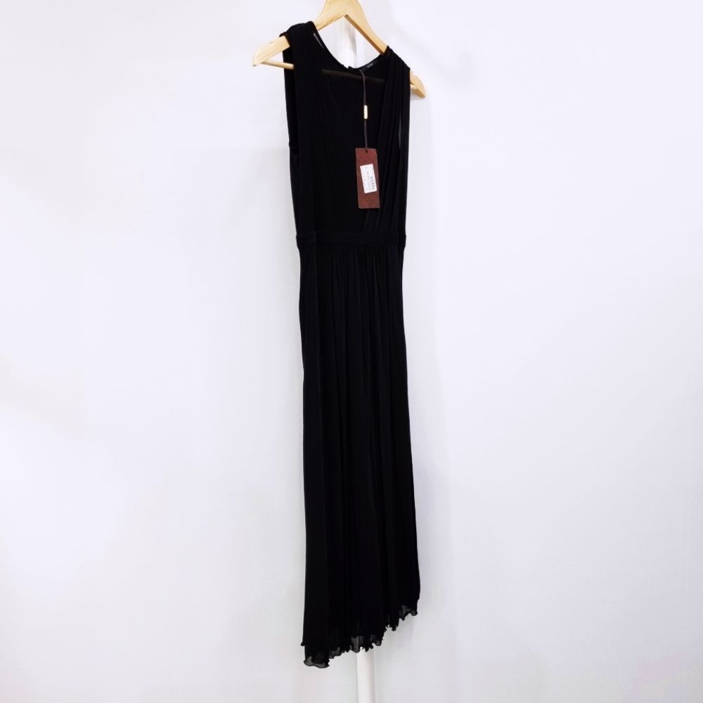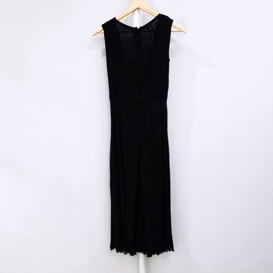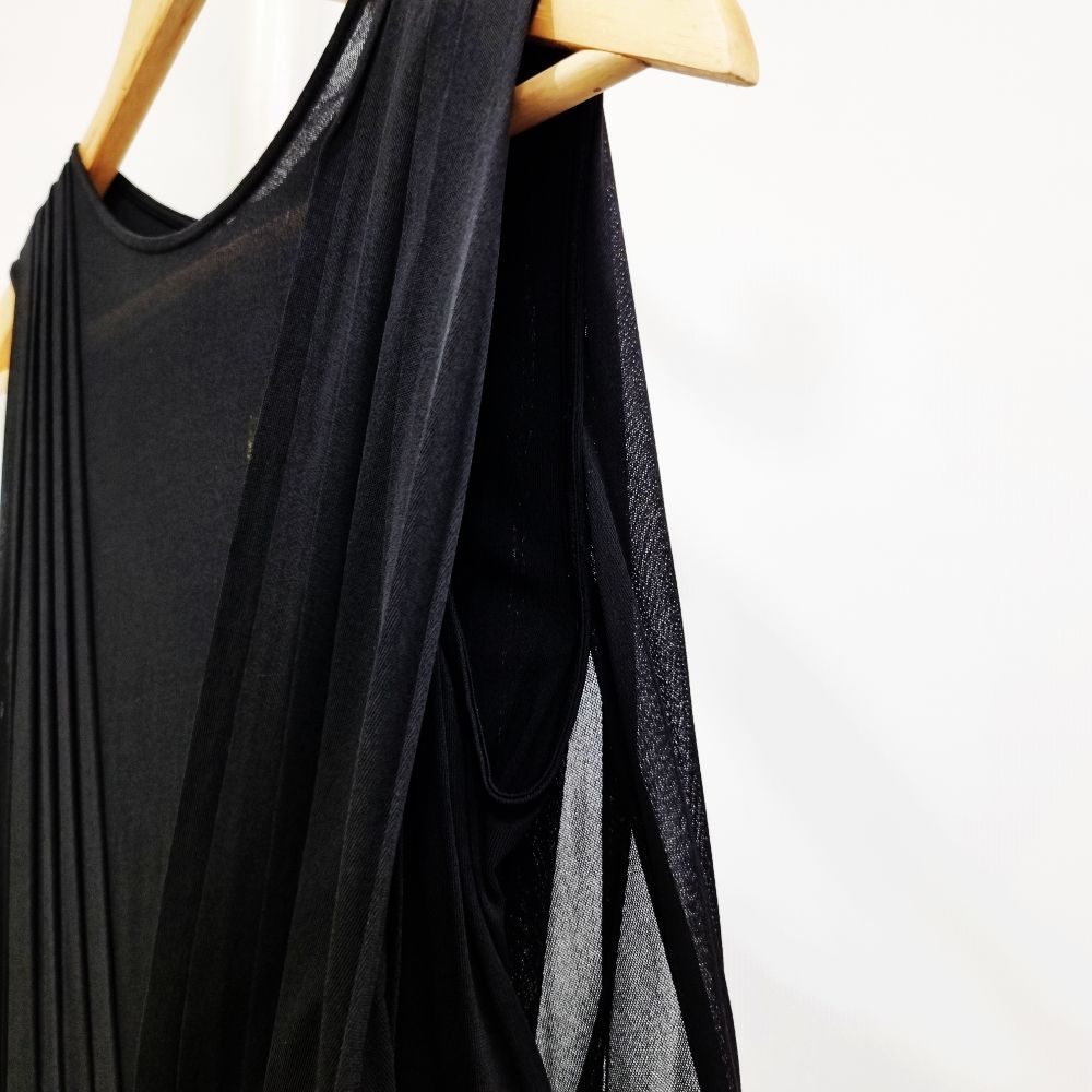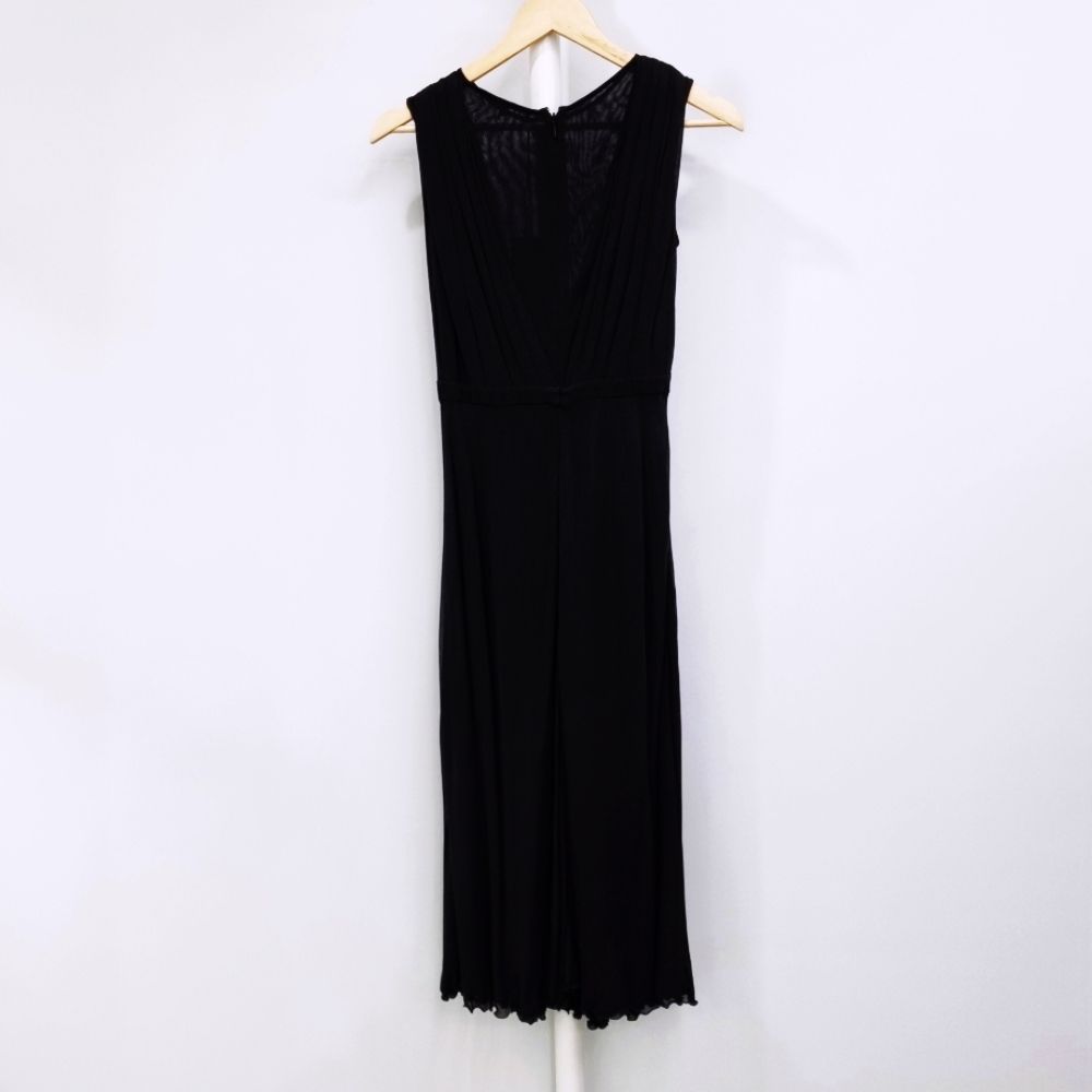 [33-44] 구찌 시스루 V넥 플리츠 슬리브리스 실크 롱원피스 블랙