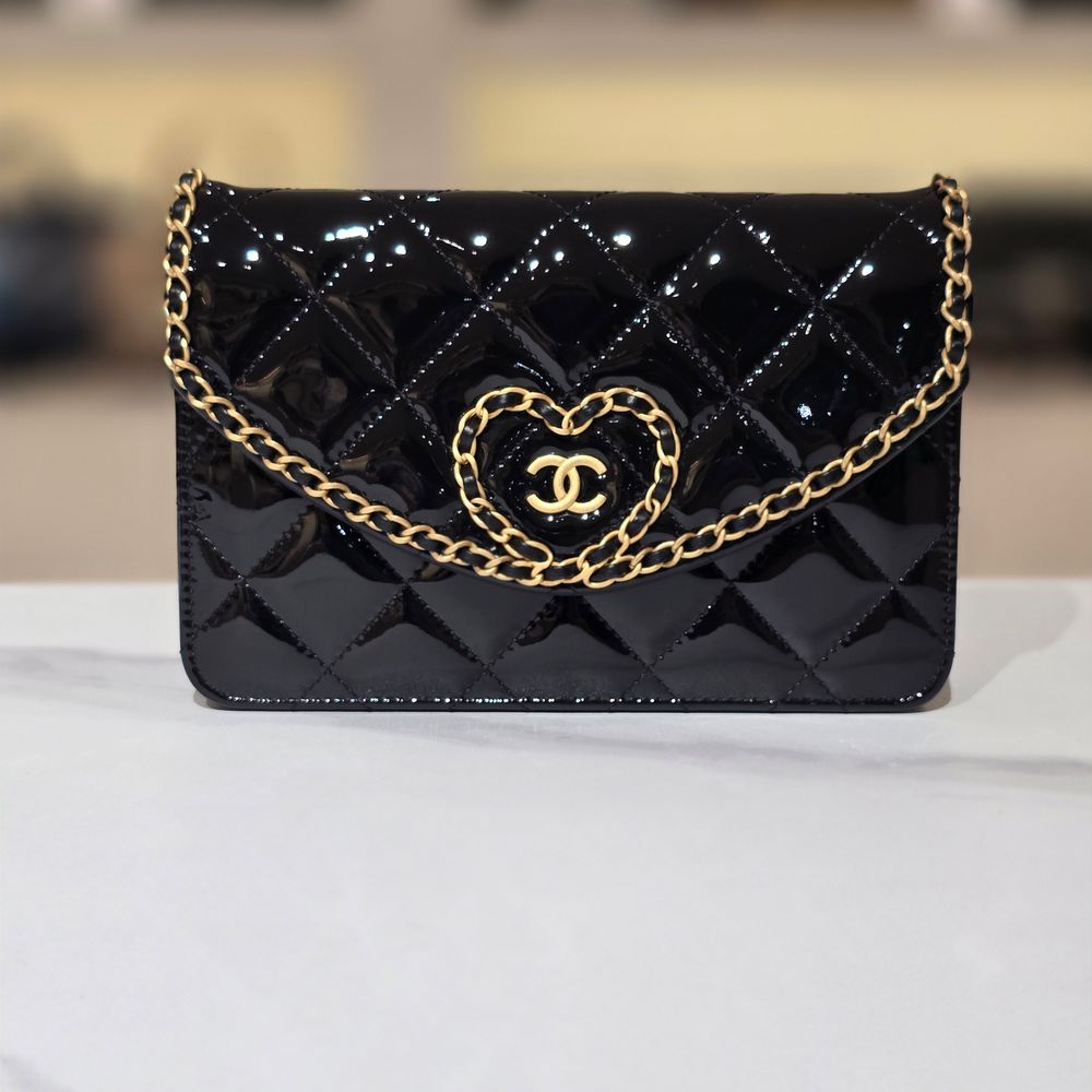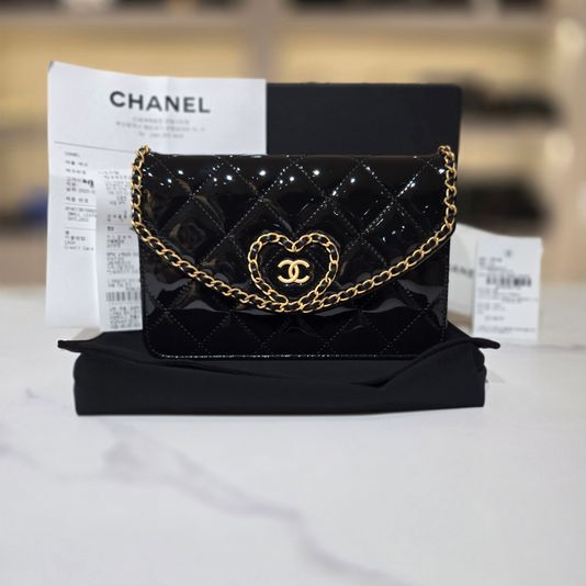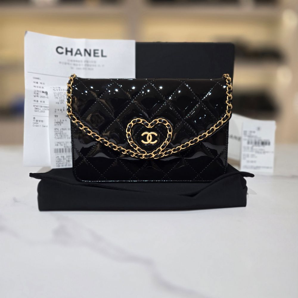 샤넬 하트 WOC 페이던트 블랙 금장 25년식 크로스백 AP4013