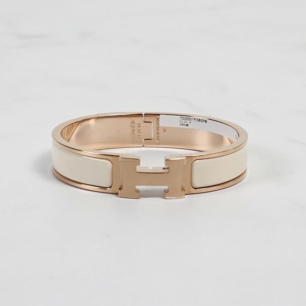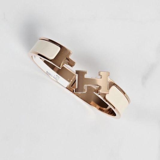 에르메스 클릭아슈 H Blanc 뱅글 팔찌 크림 로즈 골드 H700001FO85PM