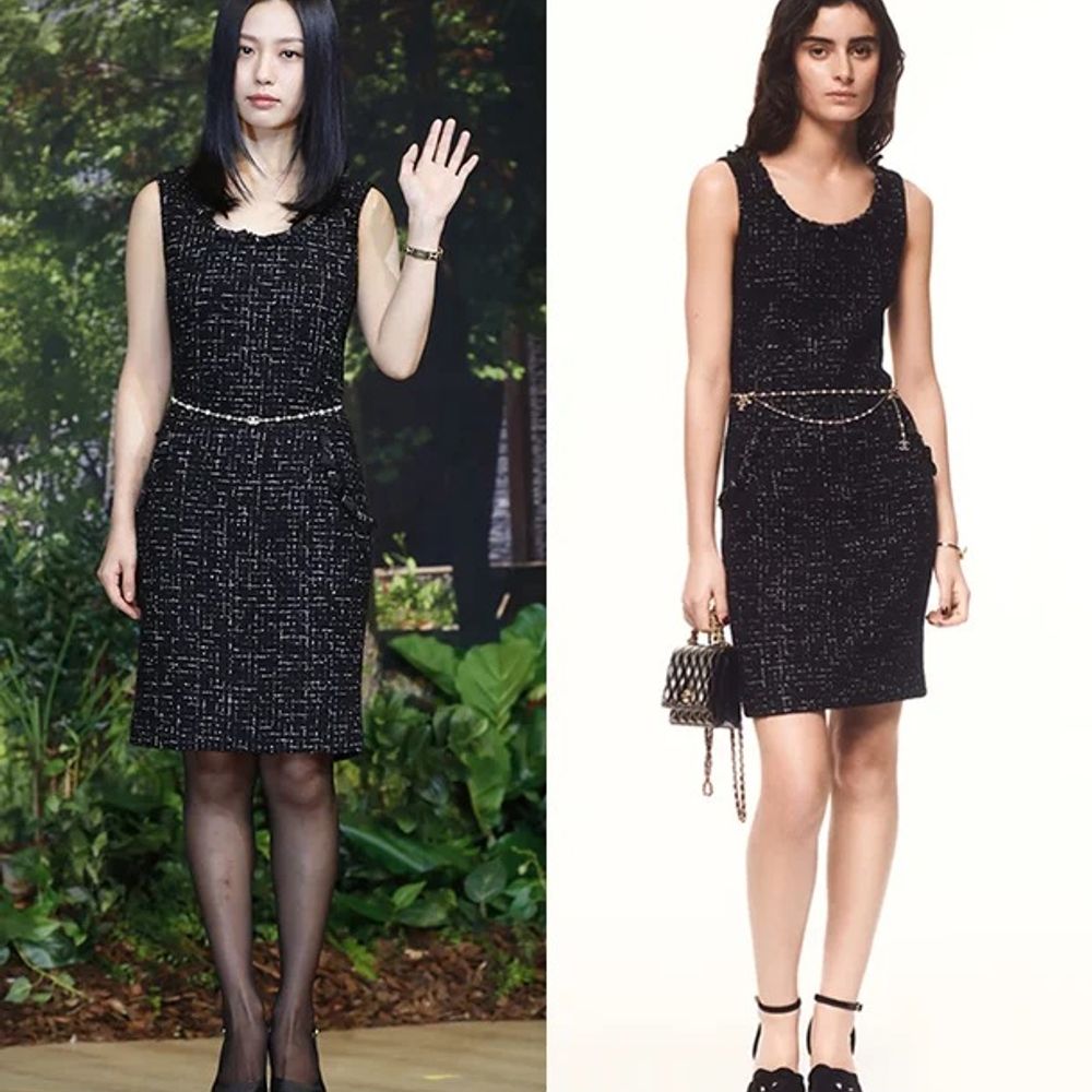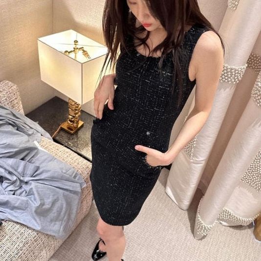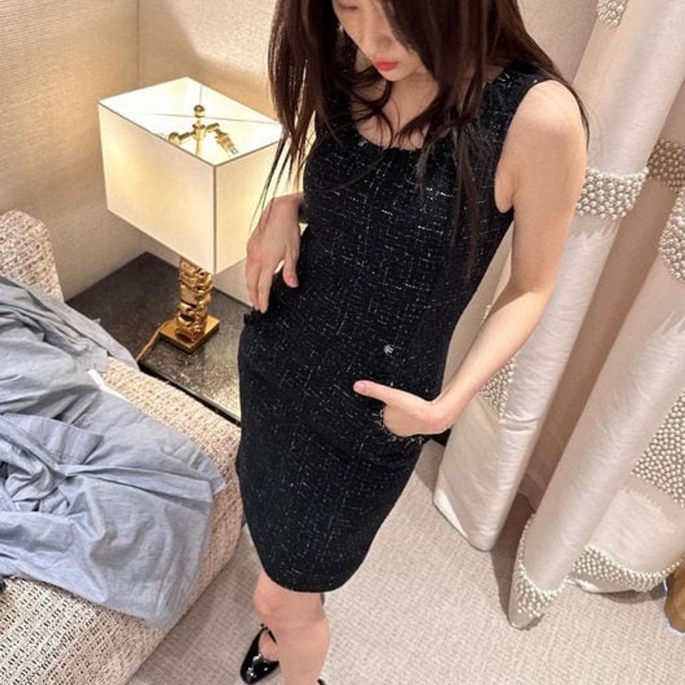 샤넬 24SS 스팽글 트위드 민소매 원피스