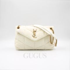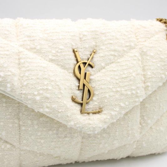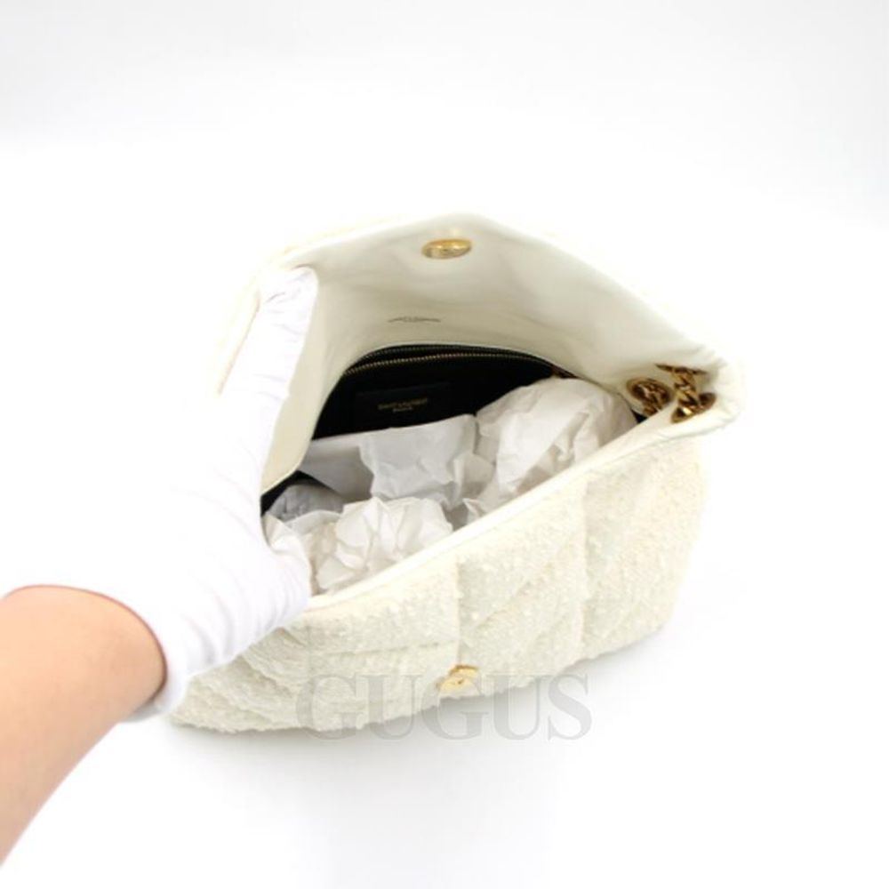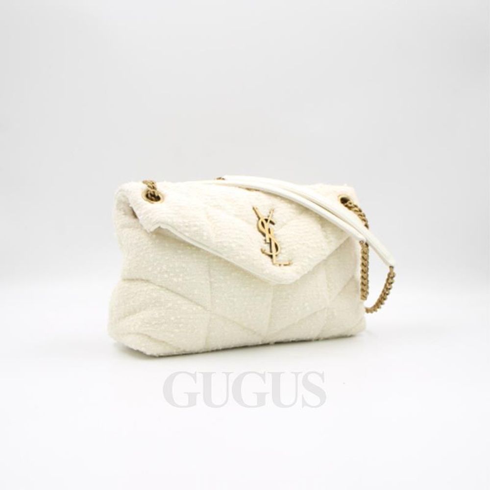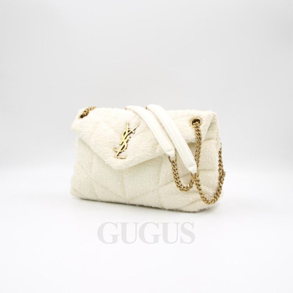 생로랑 577476 화이트 스몰 루루 푸퍼 트위드 체인 숄더백 겸 크로스백 aa30143