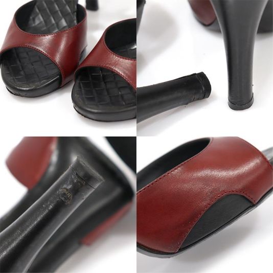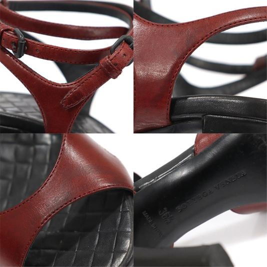보테가 베네타 254559 버건디 레더 오픈토 더블 스트랩 여성 샌들 구두 36.5